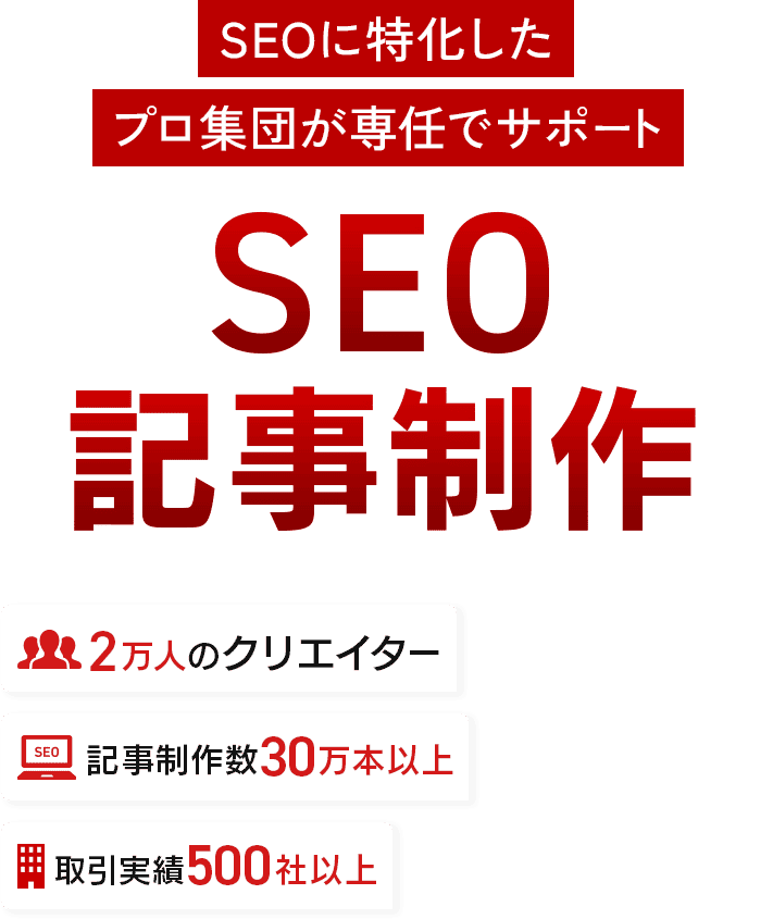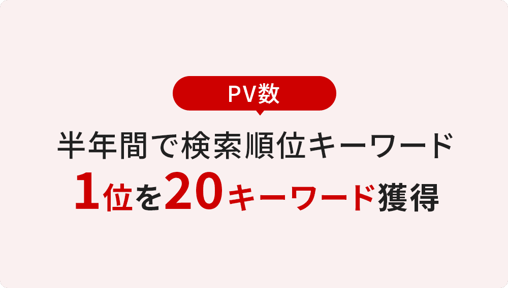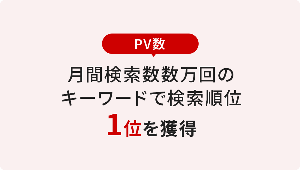 検索ボリューム50,000回以上の多数のキーワードで1位を獲得してきた実績から、大手を含む多数の企業に、10万件以上の記事制作をしてきた実績があります。