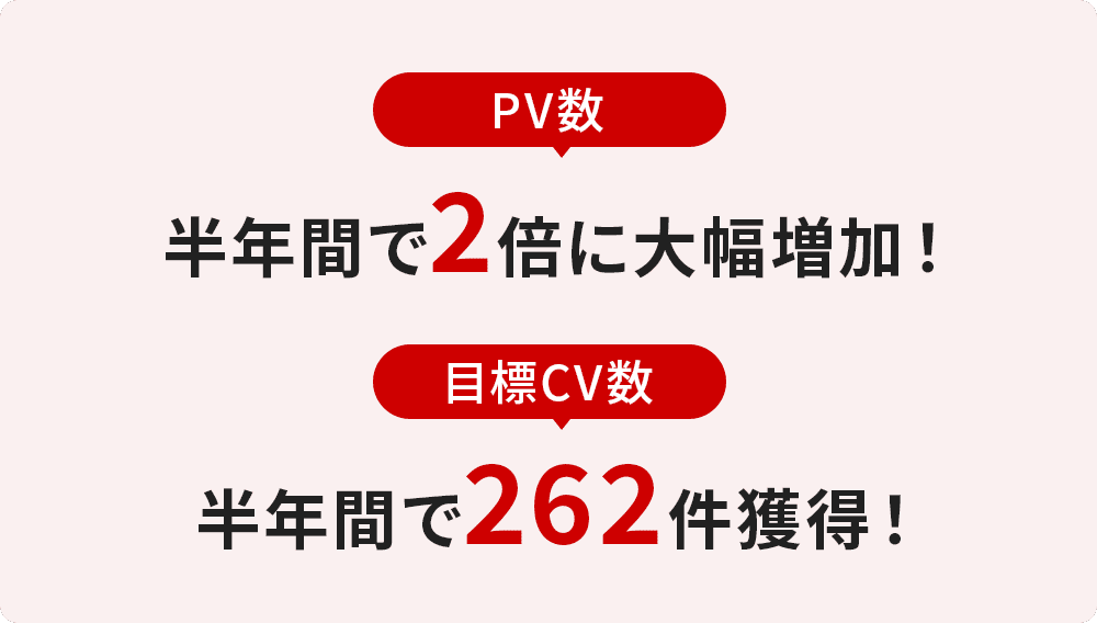 結果として、半年間でPV数が2倍に大幅増加しました。